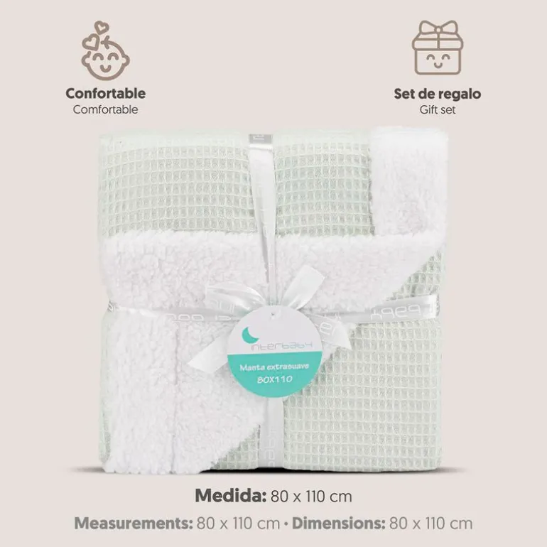 Esta manta de borreguito es perfecta para mantener a tu peque bien abrigado en los días más fríos. Su textura extra suave y agradable al tacto la convierte en una opción ideal para envolver al bebé con total comodidad y calidez.