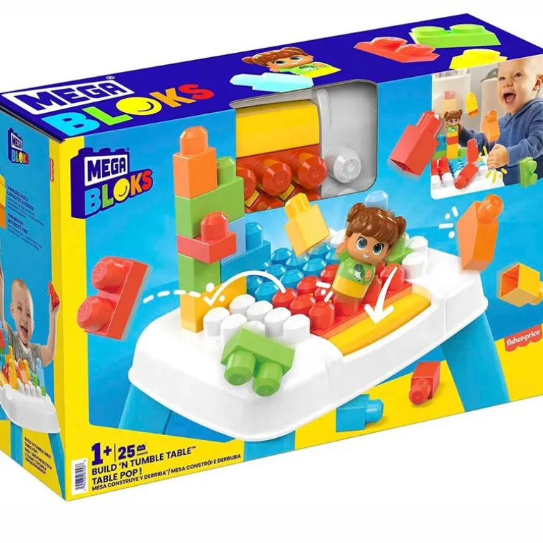 Mesa construye y destruye de la colección Megabloks. Con esta divertida mesa los más pequeños constructores pueden apilar bloques en la mesa y pulsar los botones para verlos caer ¡Ideal para las manos más pequeñas! Contiene 23 bloques grandes de construcción, 2 funciones de derrumbe en la mesa y una figura de la colección Block Buddies. Recomendado a partir de 1 año.