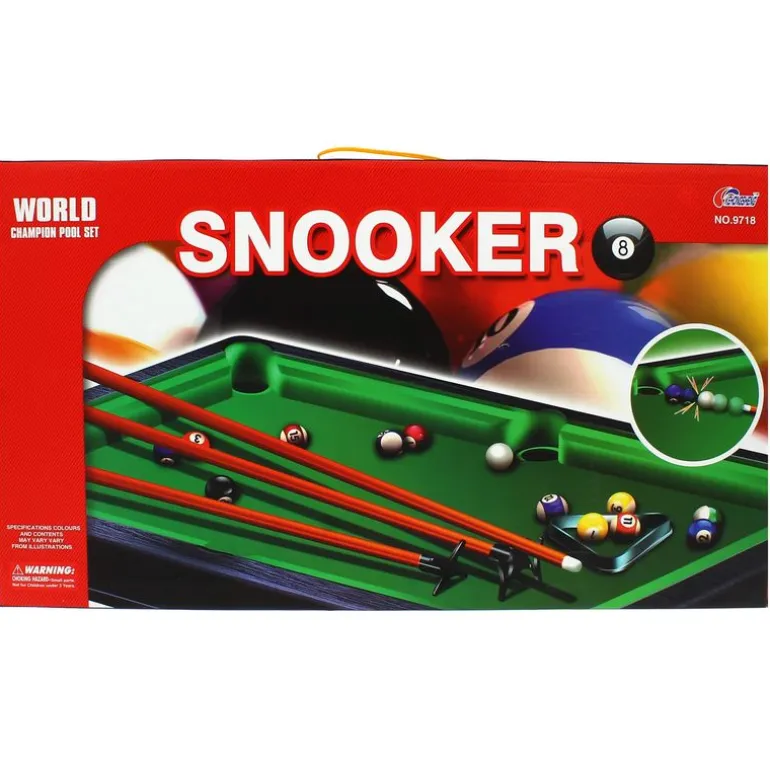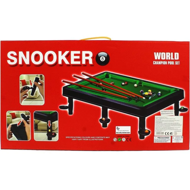 Disfruta de un divertido rato de juego con esta mini mesa de billar. Esta mesa de billar es pequeña, práctica y fácil de transportar. El set incluye: una mesa pequeña de billar, un juego de 16 bolas, un triángulo para colocarlas y dos tacos de billar. Dimensiones aproximadas de la mesa de billar: 70 x 40 cm.
