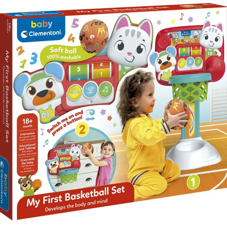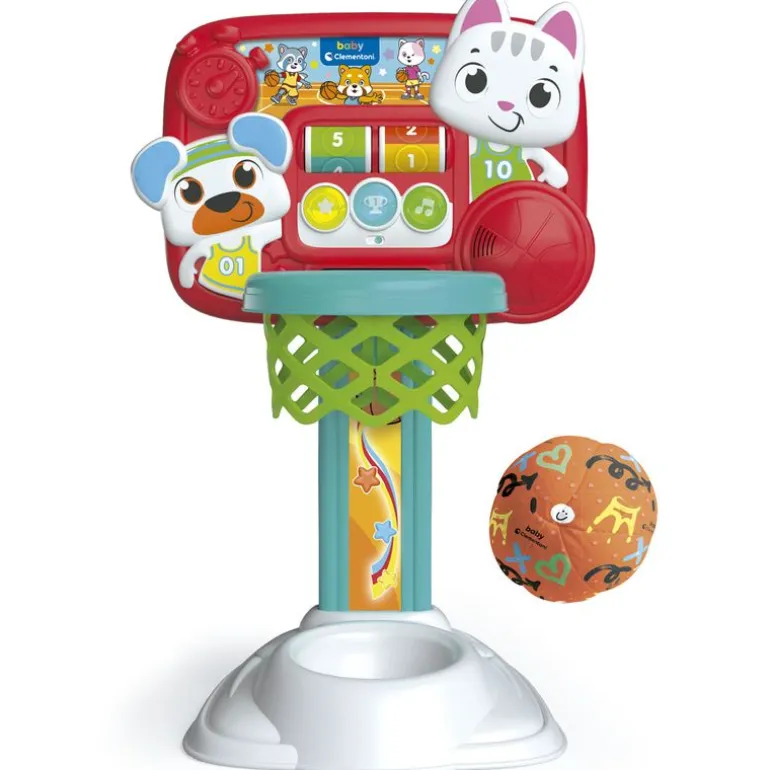 El contenido educativo, que se activa al pulsar 3 botones luminosos y marcar una canasta, ayuda a tu peque a descubrir sus primera letras y los primeros números entre divertidas canciones, rimas y aplausos.