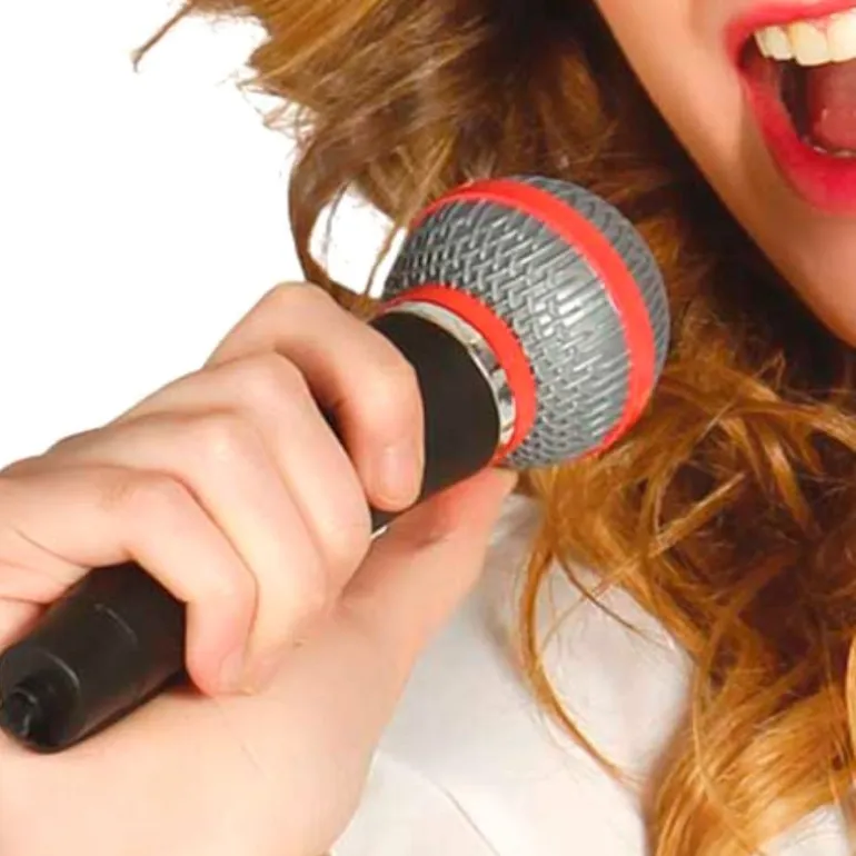 Micrófono de plástico de 20 cm aproximadamente para completar tu disfraz de carnaval.