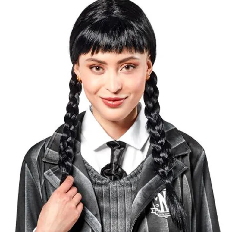 Peluca para que puedas completar tus disfraz de Miércoles Addams.