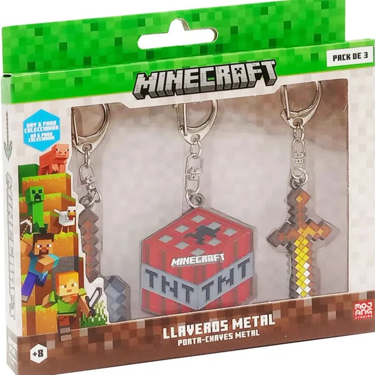 Pack en el que encontrarás 3 llaveros inspirados en las diferentes armas del famoso videojuego Minecraft.