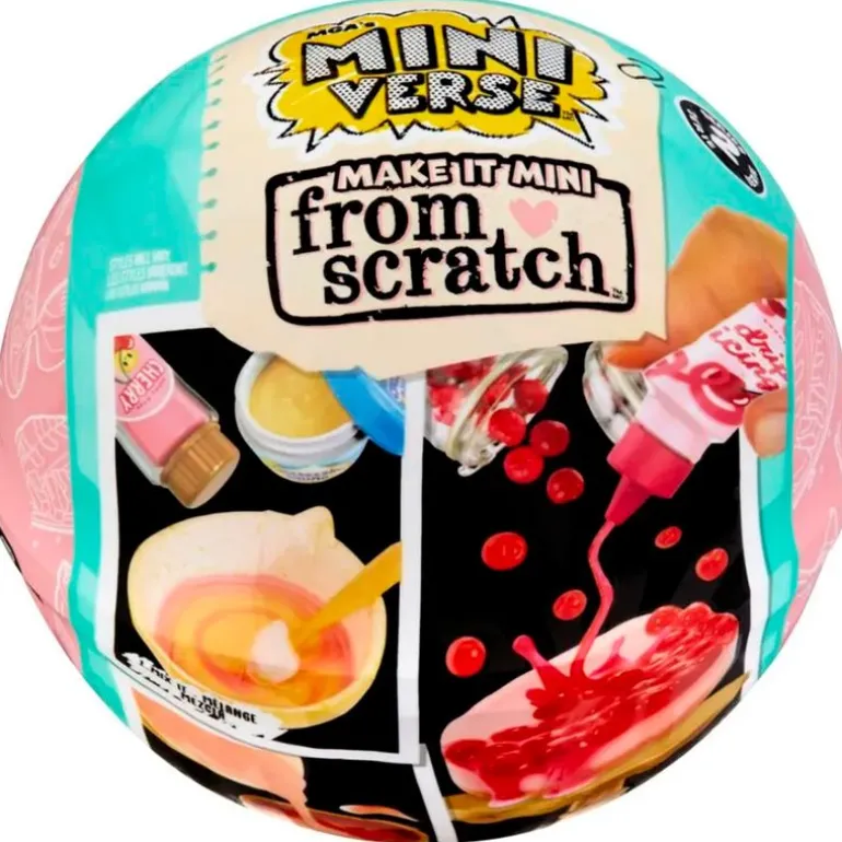 Contiene una bola con mini “ingredientes” realistas y accesorios para hacer réplicas en miniatura de tus postres favoritos.