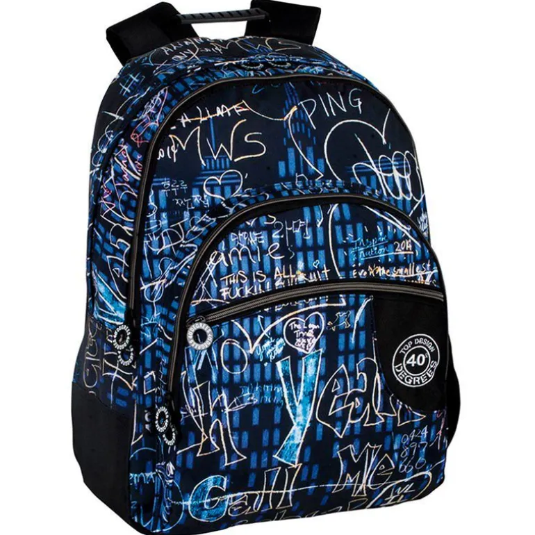 Mochila que dispone de 4 compartimentos de diferente tamaño para guardar tus complementos escolares. Tiene asas acolchadas con sistema transpirable y medida ajustable, espalda acolchada, forro interior de protección y cintas reflectantes en los tirantes. En su lateral dispone de un bolsillo lateral para poder llevar pequeños accesorios o una botella. Sus dimensiones son de 45 cm de alto x 34 cm de ancho x 23 cm de fondo aproximadamente.
