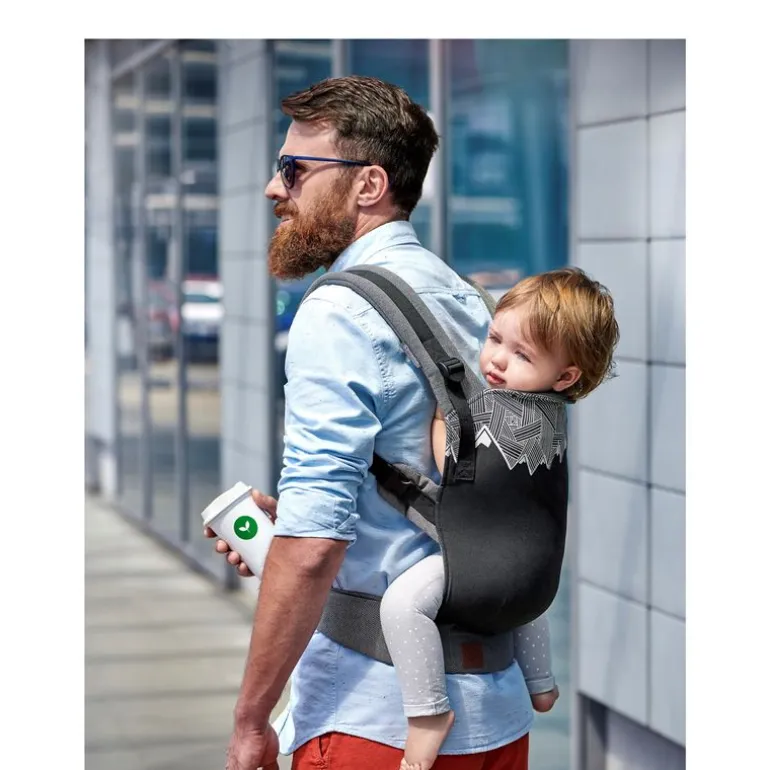 Se puede abrochar de forma que el niño mantenga la postura correcta y adecuada para los bebés más pequeños. Los bebés recién nacidos se llevan en el pecho (de espaldas).