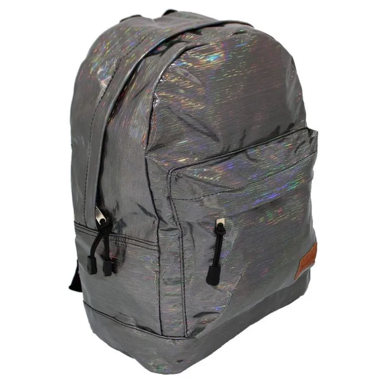 Mochila escolar con un brillante diseño en plateado, para que no pases desapercibid@. Incluye 2 compartimentos en los que organizar el material escolar que necesites. . El bolsillo principal incluye un separador acolchado para poder guardar tus dispositivos electrónicos. Sus dimensiones son de 30 cm x 42 cm x 14 cm.