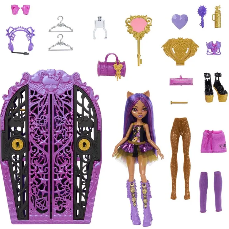 ¡Resuelve el secreto, abre las puertas de Monster High y revela la muñeca Monster High Skulltimate Secrets: Monster Mysteries! Activa las pistas en la tarjeta con la magia “Low Key”. Descubre la muñeca de Clawdeen Wolf acompañada de 19 accesorios. Recomendado a partir de 4 años.