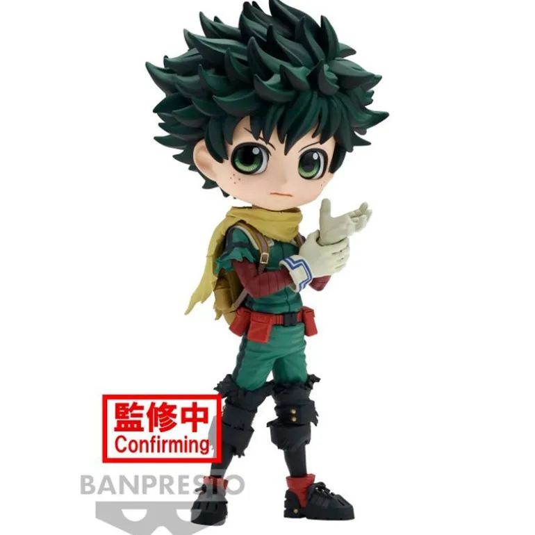 Figura fabricada en PVC de la colección Q Posket inspirada en Deku, de la serie de anime My Hero Academia. Su tamaño es de 14 cm aproximadamente y viene acompañada de una peana para exposición.