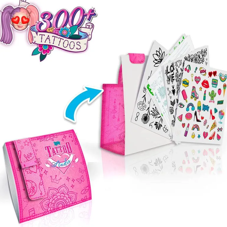 ¡Nancy siempre está a la última hora! Llega Nancy cada día un tattoo, tu muñeca favorita ha aprendido a hacer tatuajes y ha creado su propio estudio con una máquina de tatuar ¡con más de 300 tatuajes para combinar! Podrás poner los tatuajes con distinto tipo de tinta dependiendo de lo que te apetezca. Contiene tinta negra casual, efecto dorado para momentos elegantes y tinta que brilla en la oscuridad para conciertos y festivales. La muñeca tiene un tamaño de 42 cm aproximadamente. Recomendado a partir de 3 años.