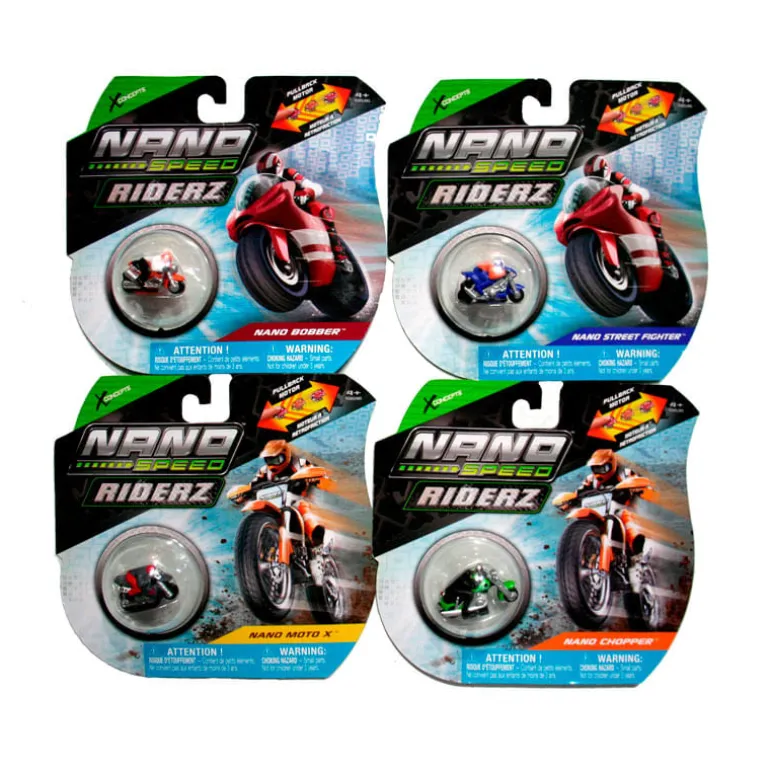 Motos Pull back pequeñas, rápidas y coleccionables. Esta fantásticas mini motos Nano Speed cuentan con una increíble potencia en relación a su peso. Son capaces de desafiar la gravedad y de realizar increíbles acrobacias. Empuja la moto hacia atrás y mira cómo arranca a gran velocidad. Hay 6 modelos diferentes ¡¡colecciónalos!! Cada modelo SE VENDE POR SEPARADO.