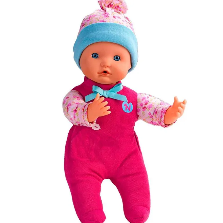 El muñequito tiene un tamaño de 25 cm aproximadamente, su cuerpo es blandito y tiene un simpático diseño, viste un pijama rosa con gorro a conjunto. Funciona con 3 pilas LR44 incluidas (pilas de demostración). Recomendado a partir de 10 meses.