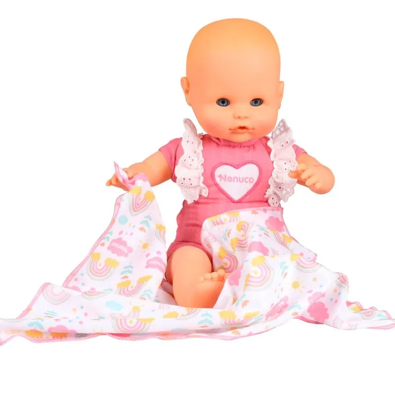 Muñeco bebé de la colección Nenuco que cerrará los ojos cuando lo pongas a dormir. Reproduce sonidos al presionar su barriguita. Viene acompañado de una manta. Funciona con pilas incluidas (pilas de demostración). Recomendado a partir de 1 año.