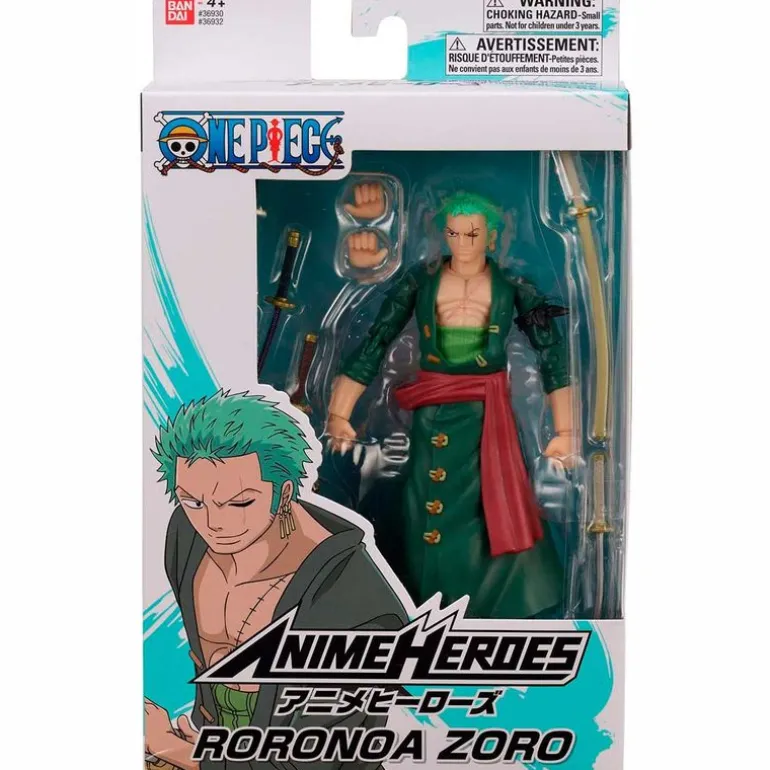 Réplica inspirada en el personaje de Zoro, unos de los personajes protagonistas de la serie de anime One Piece. La figura es articulada para que puedas reproducir todas las posiciones que quieras en el personaje. Zoro viene acompañado de manos intercambiables y sus espadas. Su tamaño es de 17 cm aproximadamente. Recomendado a partir de 4 años.