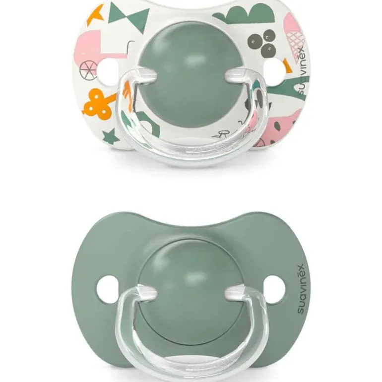 Pack de 2 chupetes de +18M con tetina fisiológica SX Pro de silicona que está avalada por la Sociedad española de Odontopediatria (SEOP)