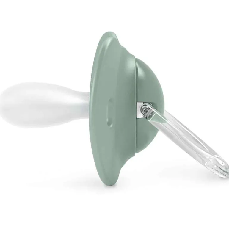La silicona con la que está fabricado arenada, de tal forma que imita el pezón materno para conseguir la máxima calidez y un movimiento flexible que adapta la tetina a la cavidad palatina.