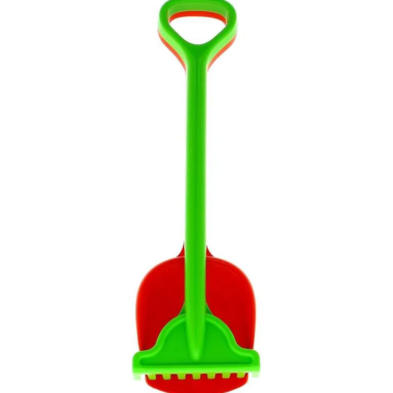 Conjunto de pala más rastrillo de gran tamaño, ideal para jugar en el parque o en la playa con la arena. Los dos accesorios son de plástico resistente y miden, aproximadamente, 56 cm de largo.