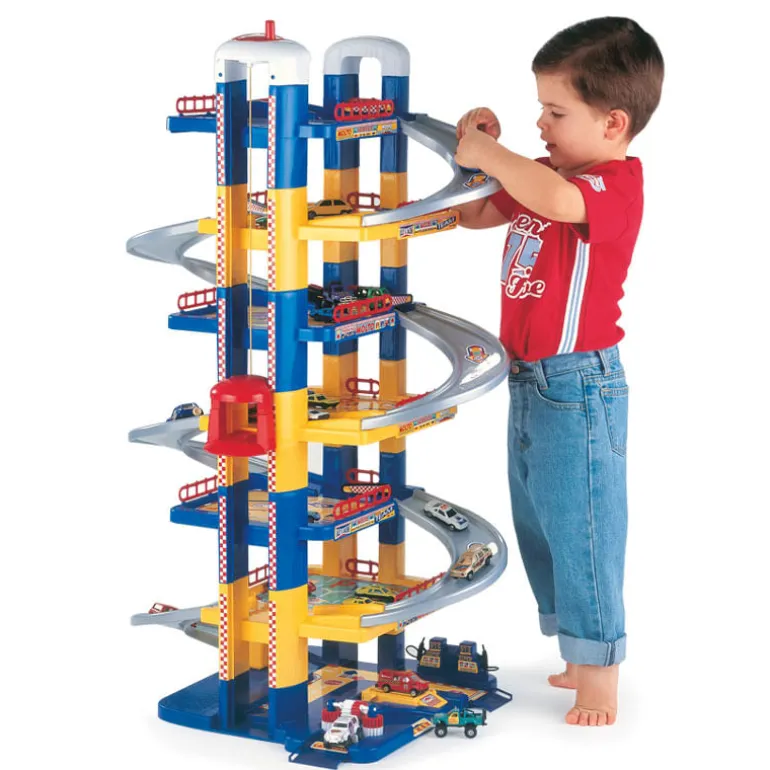 Garaje de 7 plantas fuerte, resistente, fácil de montar y de gran estabilidad. Cuenta con ascensor, lavado de coches, engrase, estación de servicio y muchas plazas para aparcar tus coches. El parking NO incluye vehículos. Medidas aproximadas del parking montado: 99 x 58 x 45 cm.