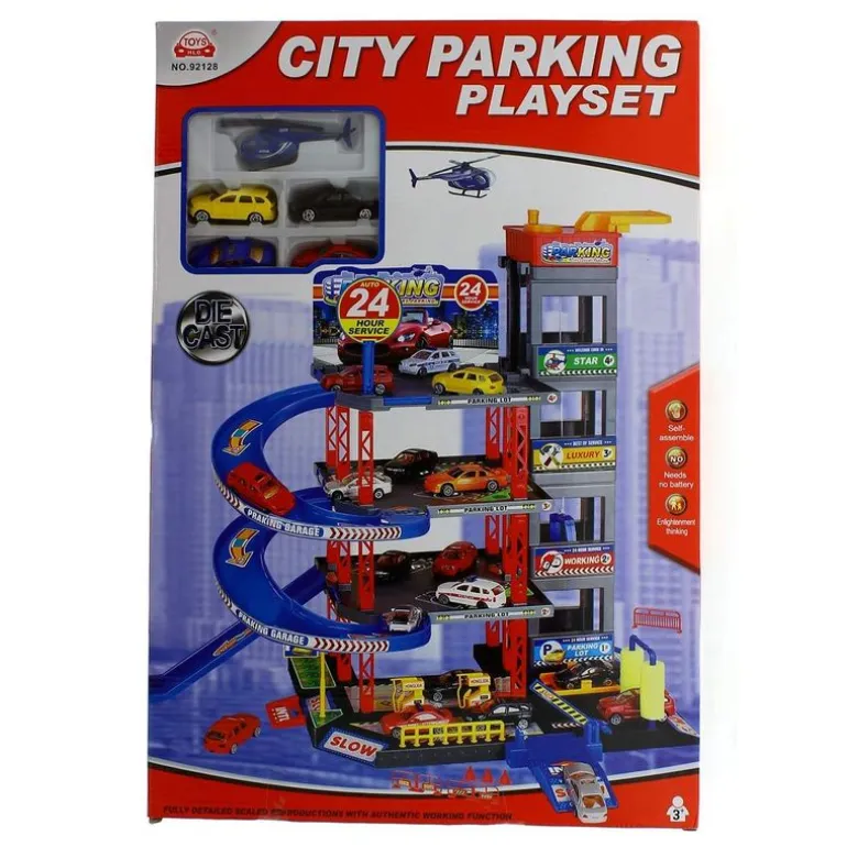 Parking de cuatro plantas con helipuerto en la azotea. Incluye ascensor y lavado de coches.