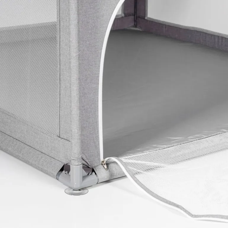 Parque con gatera que se convertirá en la zona de juegos preferida de tu bebé.., este parque dispone de ventosas en las esquinas para quedarse fijado y no deslizar, tiene un pequeño bolsillo que te permitirá guardar el chupete del bebe mientras está en su área de juegos,