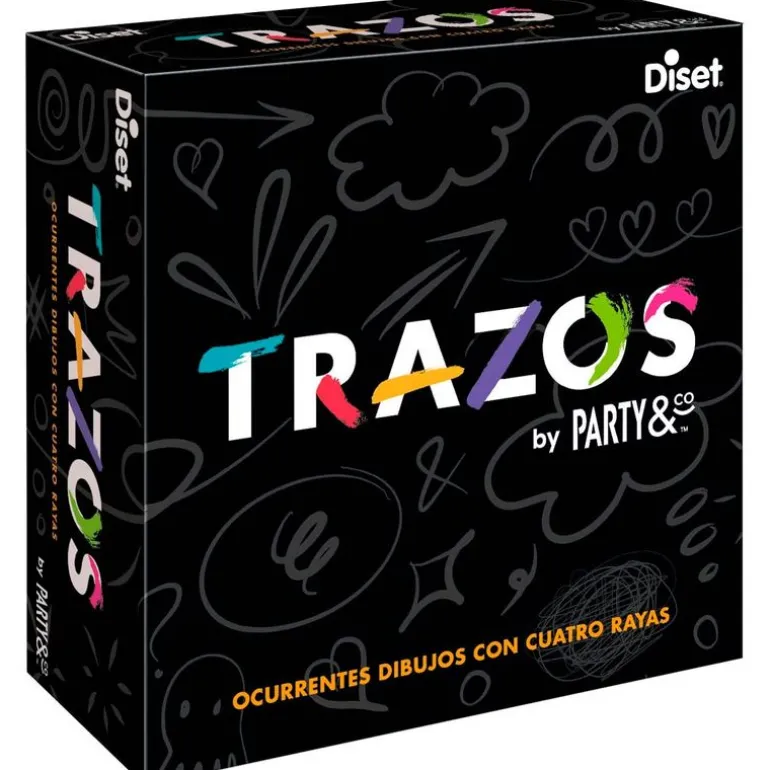 Party & Co Trazos es un divertido juego inspirado en una de las pruebas del conocido juego de mesa Party & Co ¡No es necesario saber dibujar para ganar! El ingenio y la imaginación es la clave para ganar. Todos los jugadores cogerán el mismo tablero con unos garabatos predeterminados, se tira el dado de letras y todos los jugadores tendrán que dibujar sobre el tablero 4 cosas que empiecen por la letra que haya salido utilizando los garabatos predeterminados ¡Ganará el juego quien demuestre tener más ingenio e imaginación! En el interior encontrarás 12 tableros reversibles con garabatos, un dado de letras, 4 rotuladores borrables y una pizarra de puntuación. Recomendado a partir de 8 años.