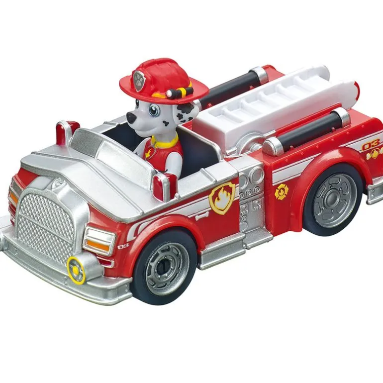 Réplica en escala 1:50 del vehículo de Marshall, de la serie de animación Patrulla Canina. Compatible con los circuitos de Carrera FIRST. Recomendado a partir de 3 años.