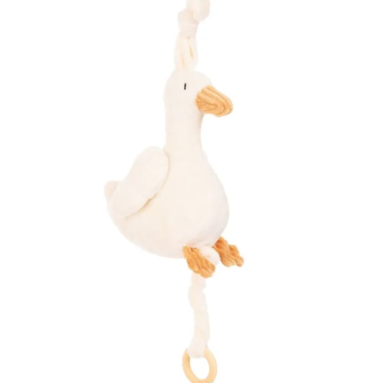 Peluche musical oca. Tira de su cola para que reproduzca una relajante melodía. Cumple con la normativa EN 71. Su tamaño es de 15 cm aproximadamente. Recomendado a partir de 0 años.