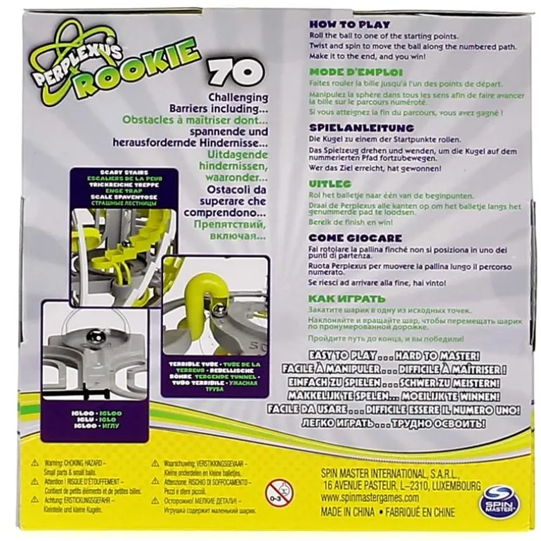 Perplexus es un juego laberinto en 3D donde cuya meta es que se mueva una canica alrededor de los obstáculos desafiantes dentro de una bola transparente.