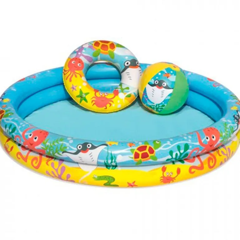 Incluye accesorios como una pelota y un flotador a juego.