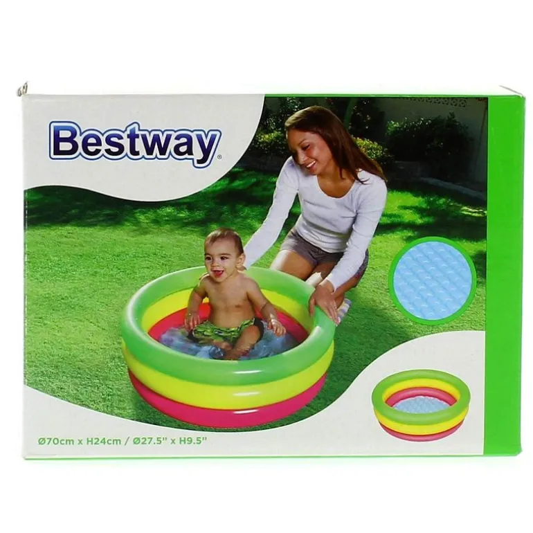 Capacidad para 41 litros de agua y 1 parche de reparación. Medidas aproximadas de la piscina montada: 24 x 70 x 70 cm.
