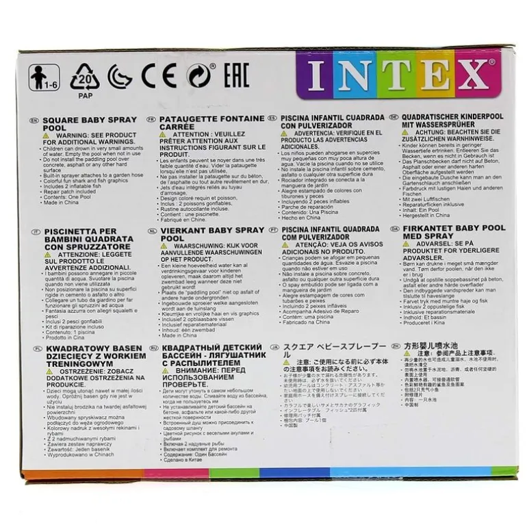 Piscina infantil hexagonal con divertidos dibujos de peces y tiburones en la base. La piscina cuenta con pulverizador de agua, 2 peces hinchables, adaptador de conexión a manguera (NO incluida) y 1 kit de reparación para pequeños pinchazos o poros. Edad recomendada de 1 a 6 años. La piscina tiene capacidad para 115 litros de agua y mide, aproximadamente, 11 x 140 cm.