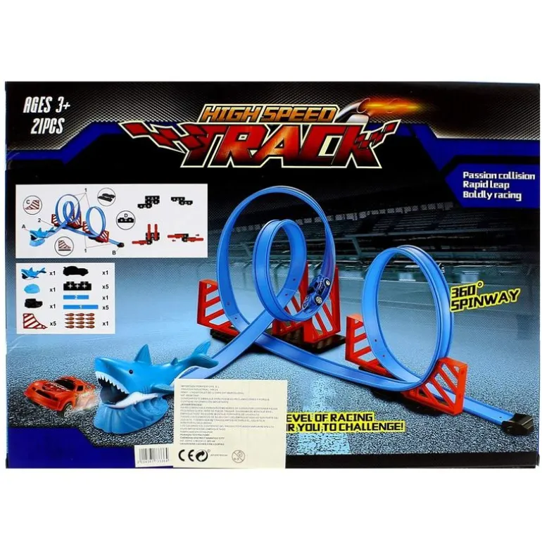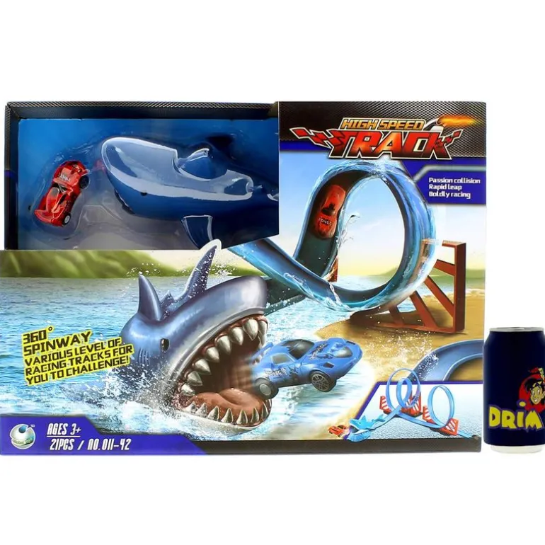 Pista de vehículos con un looping de 360 grados… ¡Y un temible tiburón!