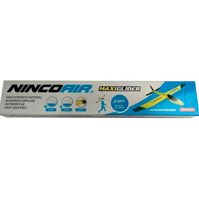 Maxi Glider de la colección Ninco Air es un avión planeador con alas de 85 cm de longitud. Recomendado a partir de 3 años.
