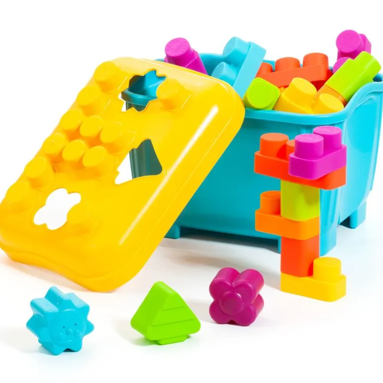 Caja de actividades infantil de la colección Play & Sense de Molto. En el interior encontrarás 15 piezas de construcción diferentes que podrás colocar en la parte de la tapa. Una vez terminado el juego puedes volver a guardar las piezas en la caja.