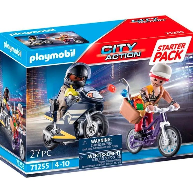 Pack de la colección Playmobil City Action en la que encontrarás un policía SEK, un ladrón, una moto, un casco de visera, unos guantes, una pistola, una bicicleta, una gorra con visera, una bolsa y muchos más. Recomendado a partir de 4 años.