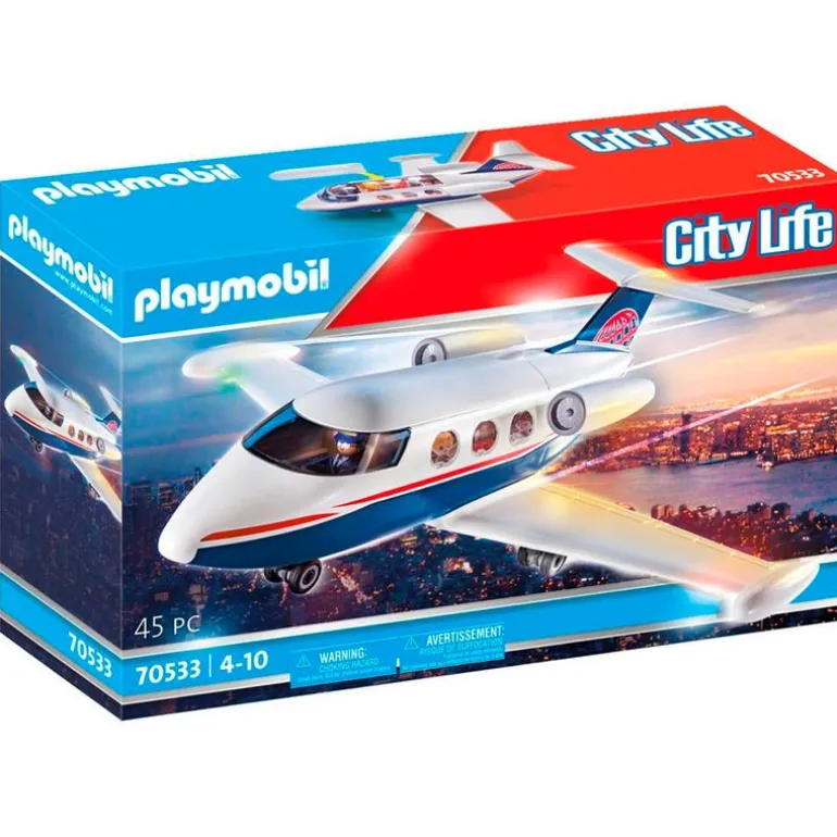 Jet Privado de la colección Playmobil City Life que podrás abrir por la parte superior y dispone de espacio para 3 figuras Playmobil. Contiene las figuras del piloto y 2 pasajeros. Recomendado a partir de 4 años.