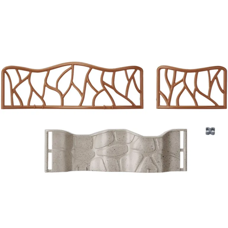 Set de vallas de zoo Playmobil. Crea bonitos espacios para que tus animales se sientan a gusto en el zoo. Contiene dos vallas de piedra, tres de madera grandes y tres de madera pequeñas, además de los enganches para unirlas. Se pueden colocar como se quiera, creando uno o más recintos.