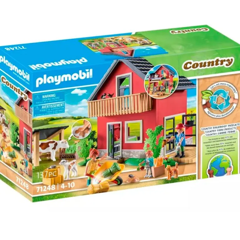 Pack de la colección Playmobil Country en el que encontrarás la casa de campo. La casa dispone de casa con áreas de estar y dormitorio amueblado, una gran puerta doble en la planta baja que conduce a la terraza y muchos animales que cuidad. También incluye 2 figuras de la colección Playmobil Country. Recomendado a partir 4 años.