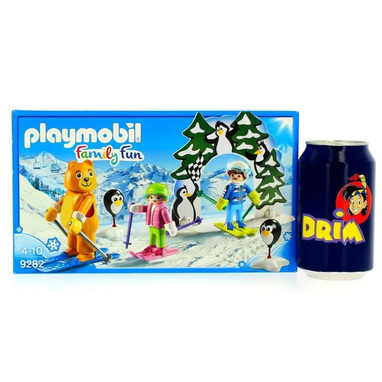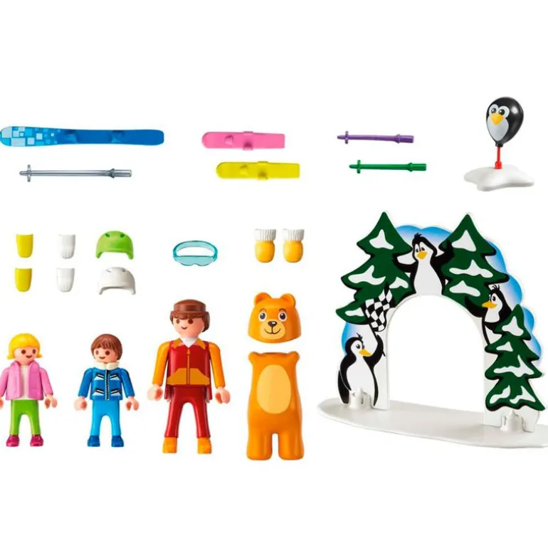 Escuela de esquí de Playmobil. ¡En esta escuela tus figuras se convertirán en unas profesionales del deporte! Con el arco que incluye y los globos podrán realizar ejercicios de slalom para practicar. Incluye tres figuras Playmobil, entre las que se encuentra el instructor y que puede llevar un disfraz de oso extraíble. También encontrarás en el interior todos los accesorios para realizar el deporte como esquís, cascos, guantes… Recomendado a partir de 4 años.