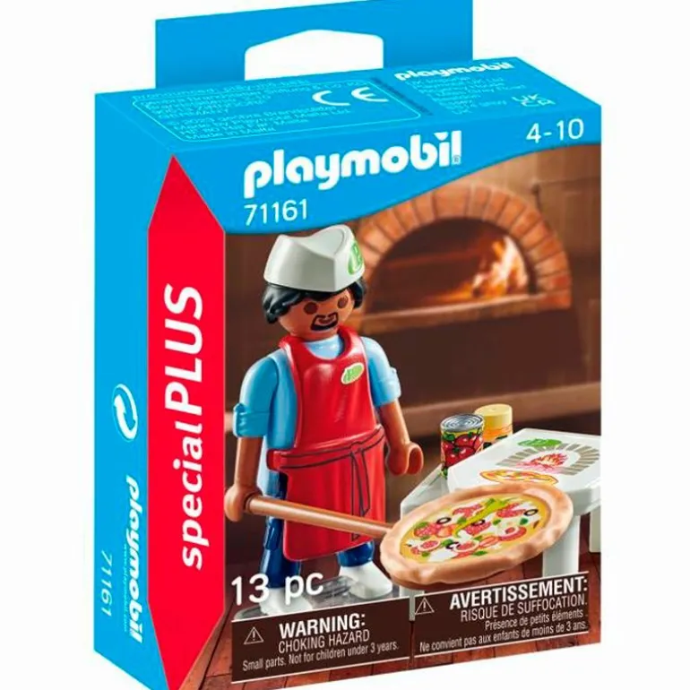 Pizzero de la colección Playmobil Special Plus. En el interior encontrarás una figura Playmobil con gorro de cocinero, una mesa, tomates enlatados, una caja de pizza y más accesorios. Recomendado a partir de 4 años.