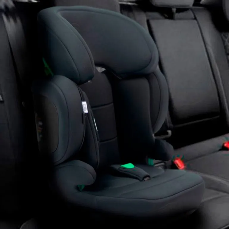 Se instala mediante el isofix y el cinturón de 3 puntos del coche, con una guía superior para un correcto pase del cinturón y un protector para evitar rozaduras.