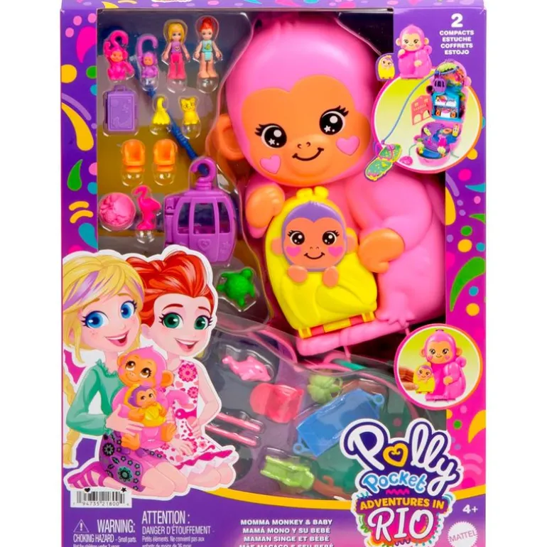 Playset de la colección Polly Pocket en forma de mamá mono con su bebé ¡Que podrás utilizar de bolso!