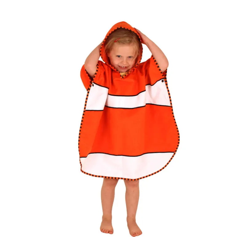 Divertidos ponchos con formas de animales y colores muy vivos.