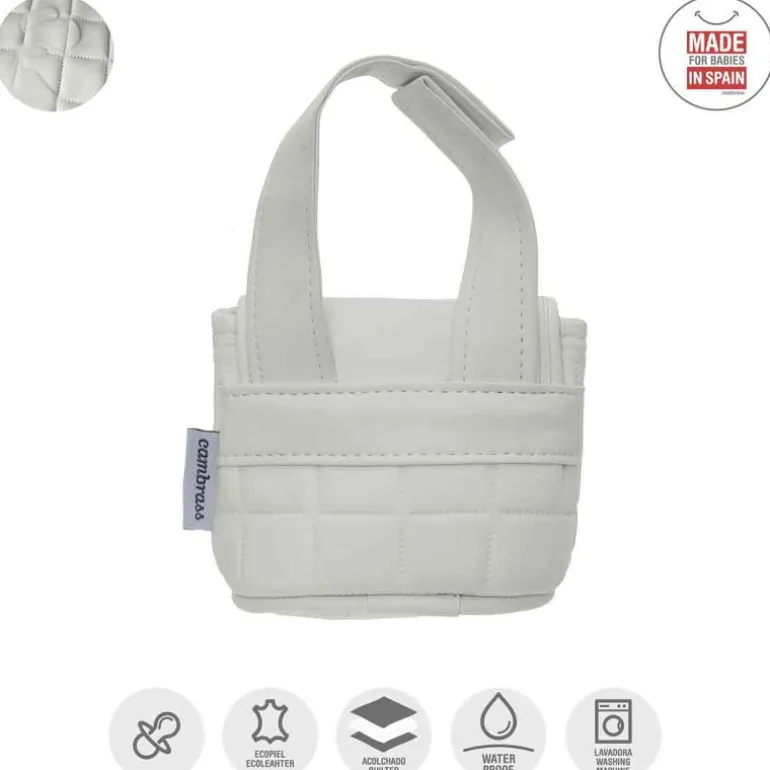 Este portachupetes está diseñado para guardar los chupetes o biberones pequeños del bebé y transportarlos de forma cómoda e higiénica. Fabricado en España. Por Cambrass.