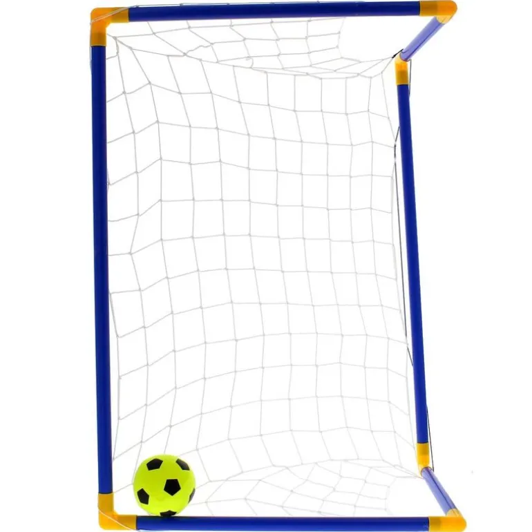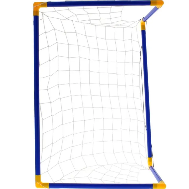 Set de 2 mini porterías de fútbol, fabricadas en PVC. Practica tu puntería y diviértete echando un partido con los amigos. Incluye 2 redes, 1 pelota, 1 hinchador y 8 piezas para clavar la portería en la hierba. Medidas aproximadas de las porterías: 60x85x42 cm.