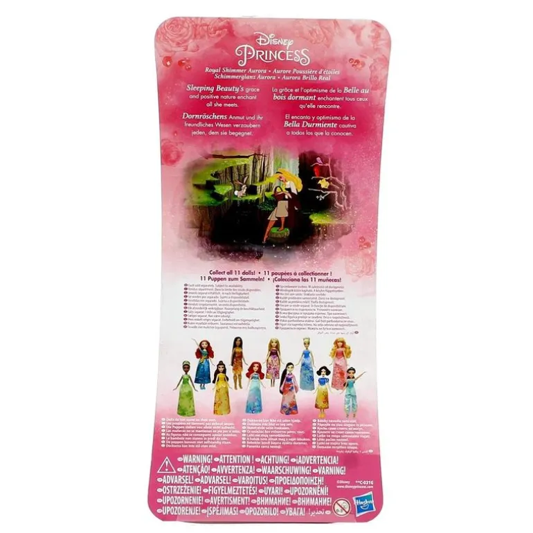 Muñeca articulada de la Princesa Disney Aurora. Péinala, juega con ella y déjala bien guapa para su encuentro con el príncipe Felipe. La muñeca mide, aproximadamente, 28 cm.
