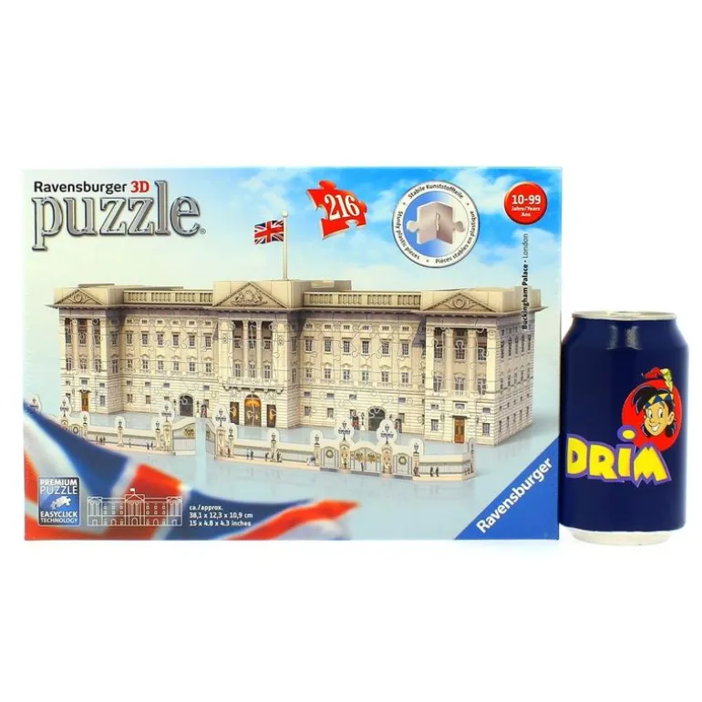 Puzzle en 3D del impresionante y visitado Palacio de Buckingham, la residencia oficial de la Reina Isabel II. Se compone de 216 piezas que se ajustan perfectamente entre sí, por lo que el montaje no necesita de colas ni pegamentos.