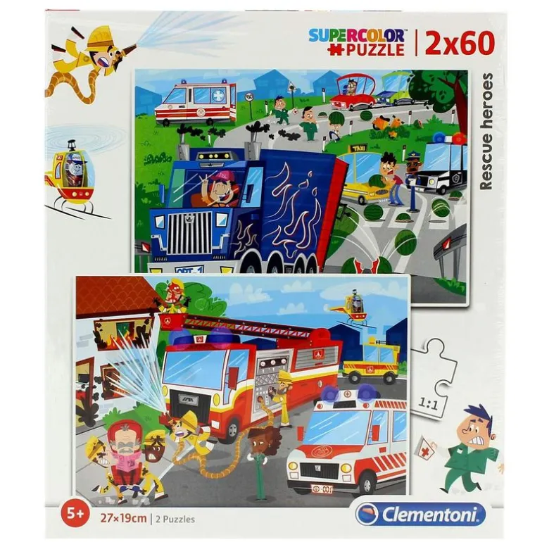 Conjunto de 2 puzzles compuestos de 60 piezas cada uno, inspirados en los distintos vehículos de emergencia.