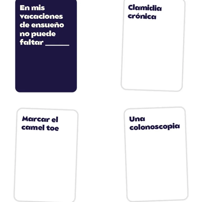 Qtden es un juego de cartas en el que tienes que llenar todos los huecos ¡Por fin llega a España el juego para mentes sucias como la tuya! Rellena el hueco en la carta de pregunta con la respuesta más disparatada (NO apto para sensibles). En el interior encontrarás 480 cartas para comenzar a jugar. Recomendado a partir de 18 años.