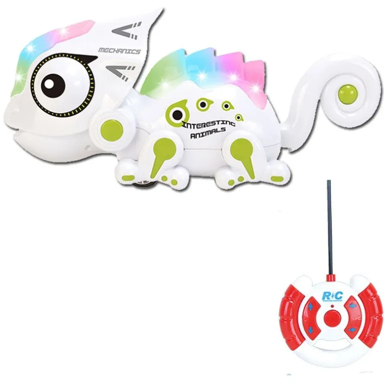 Camaleón radiocontrol con sensor de color. La boca del camaleón está equipada con un sensor que captura el color del objeto que tenga delante y cambiará de color su cuerpo acorde al color que captura. Podrás moverlo en diferentes direcciones gracias al mando que lo acompaña. Funciona con batería incluida y 2 pilas AA NO incluidas. Recomendado a partir de 8 años.